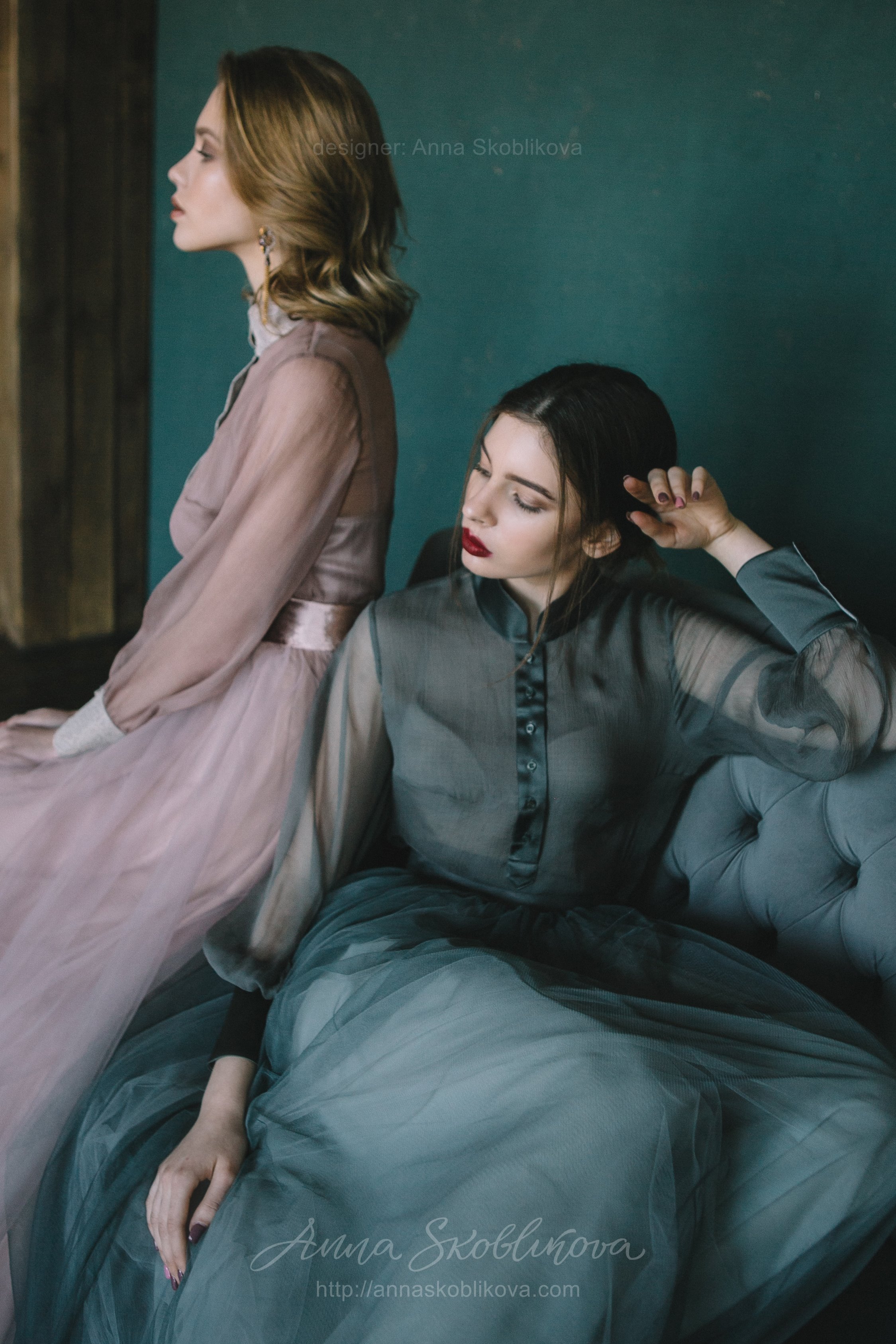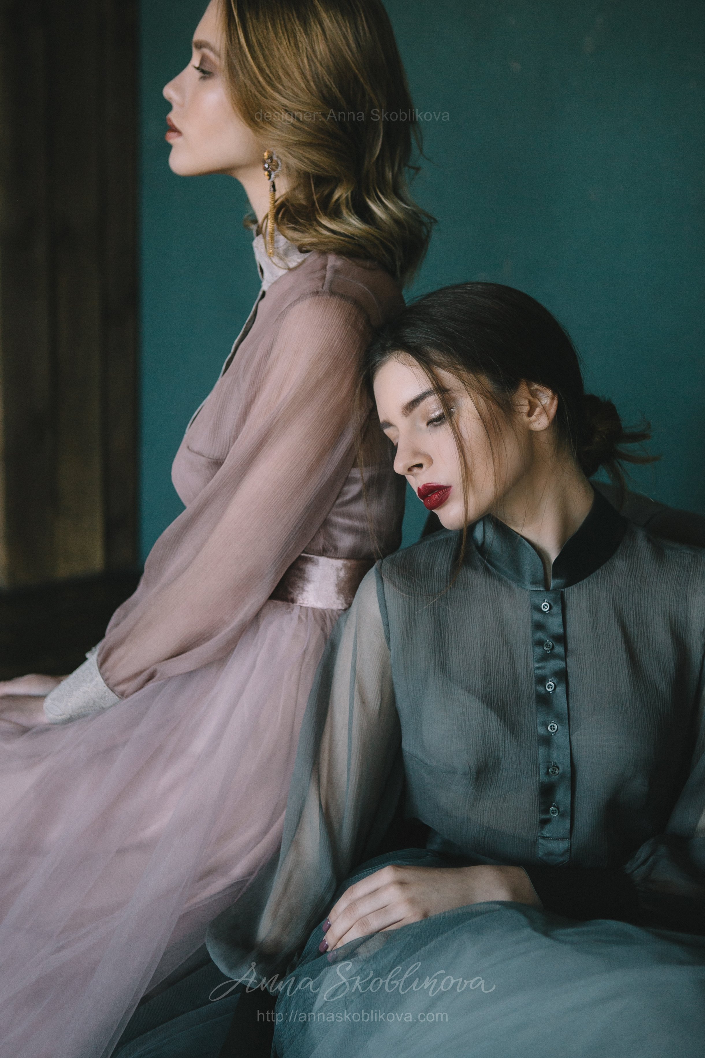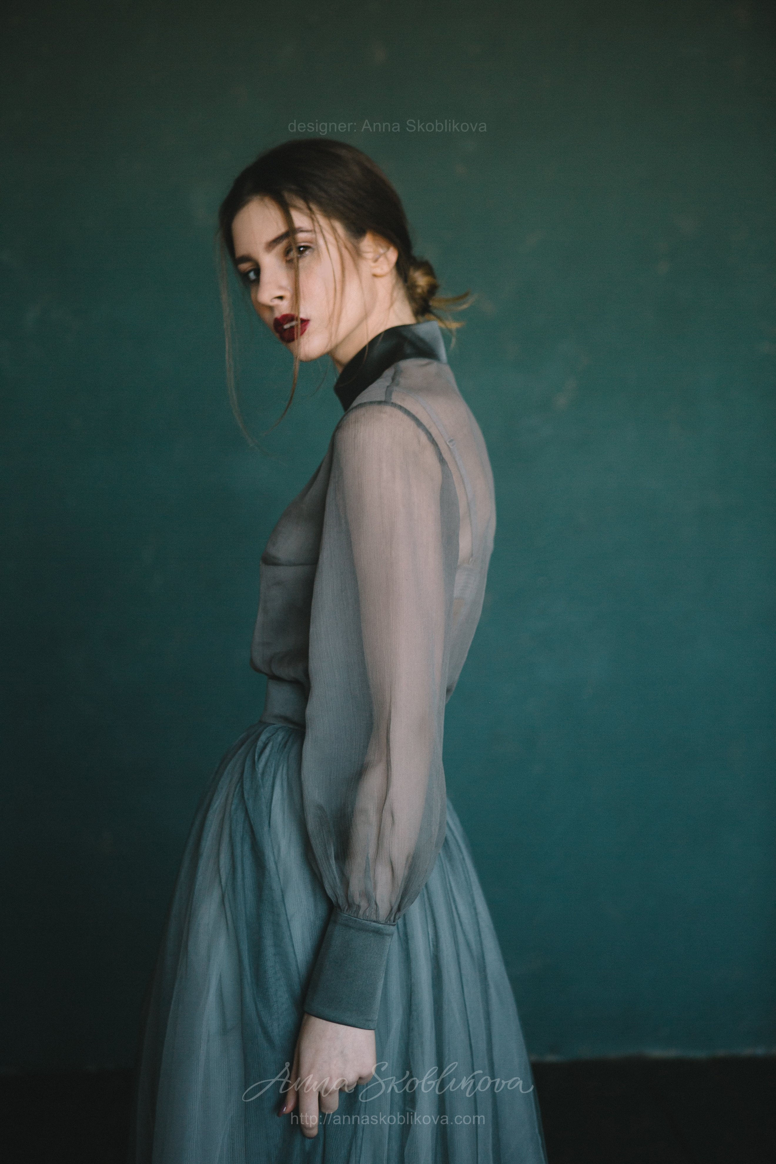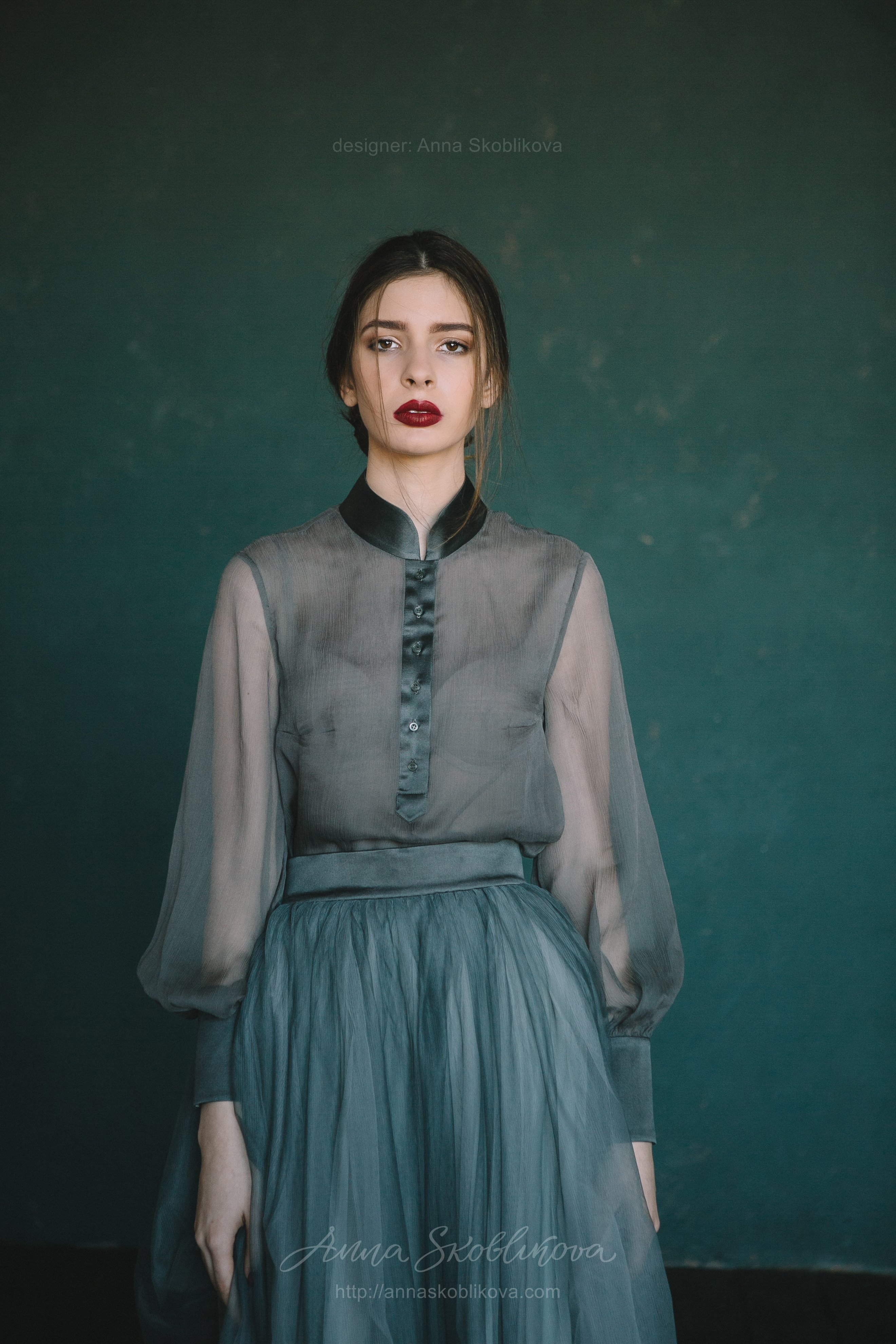 Бирюзовое свадебное платье из блузки и юбки вечерний комплект – блуза из креш-шелка и юбка из сетки.