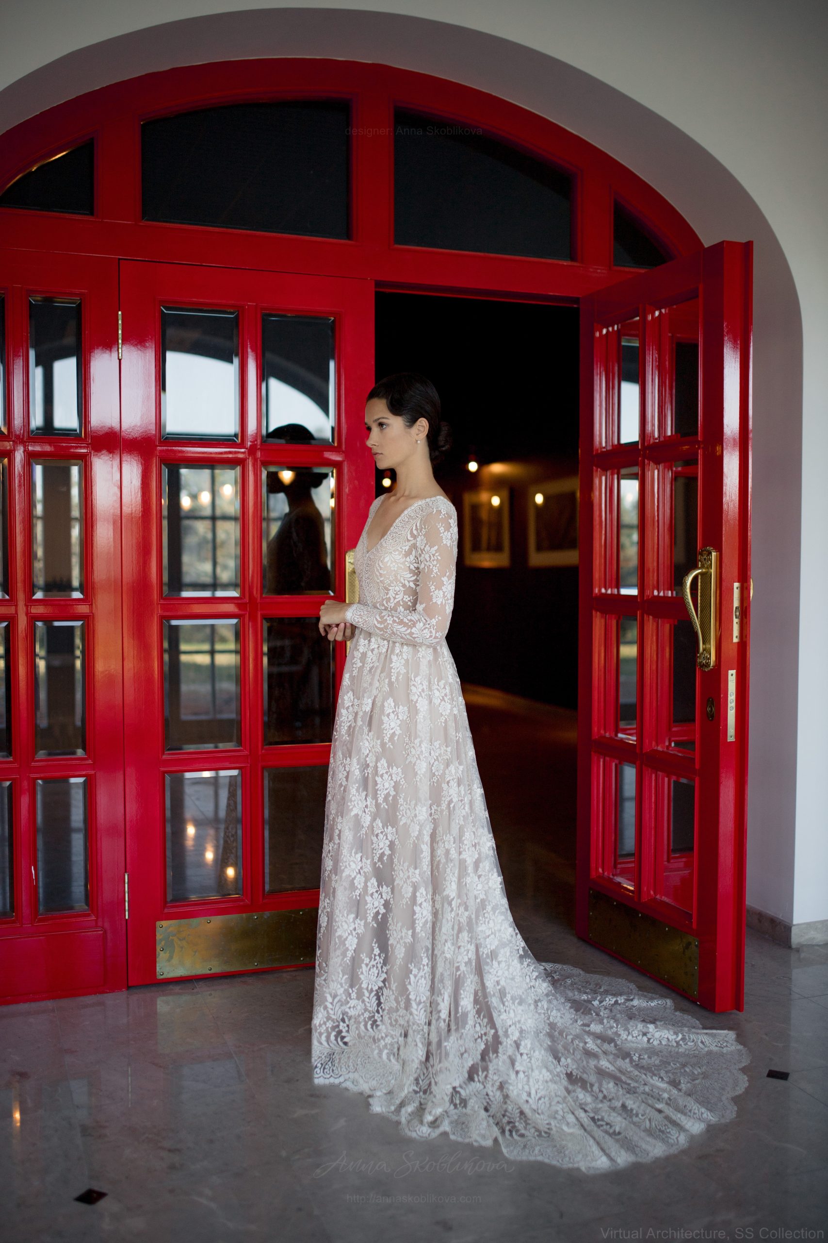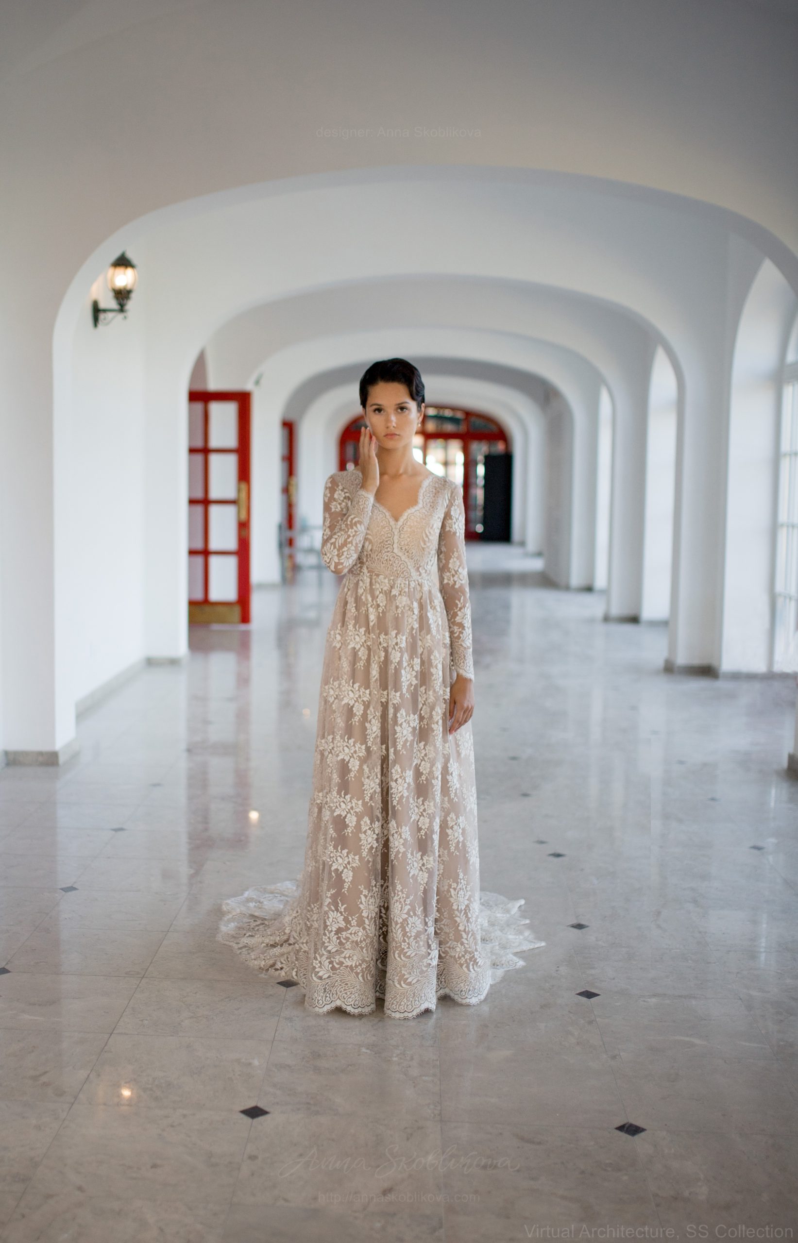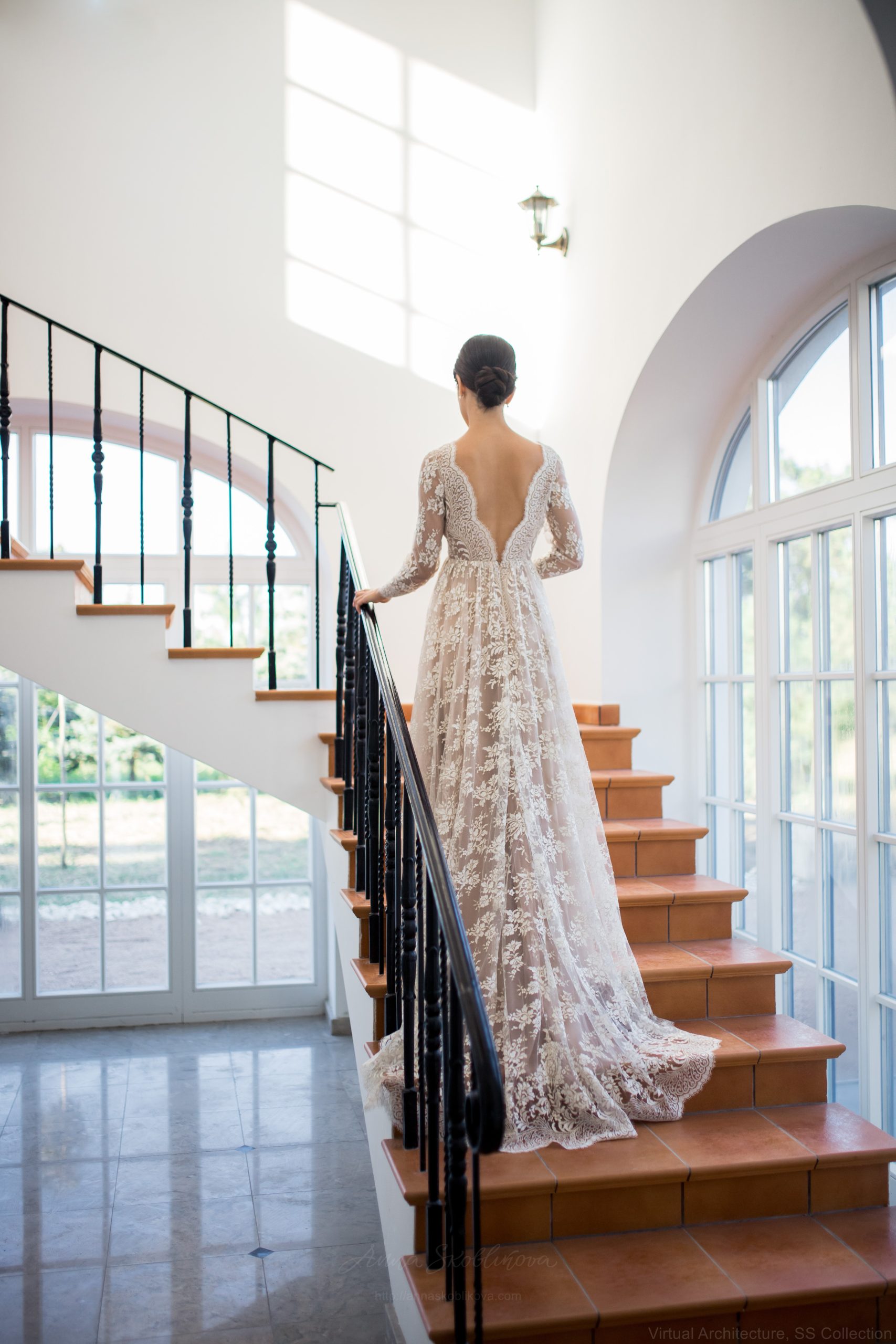 Спинка и лиф с фестончатым краем. Рукав длинный, выполнен из кружева без подкладки. В этом свадебном платье вы можете ощутить все прекрасные свойства натурального дышащего кружева, которое прикасается к телу.