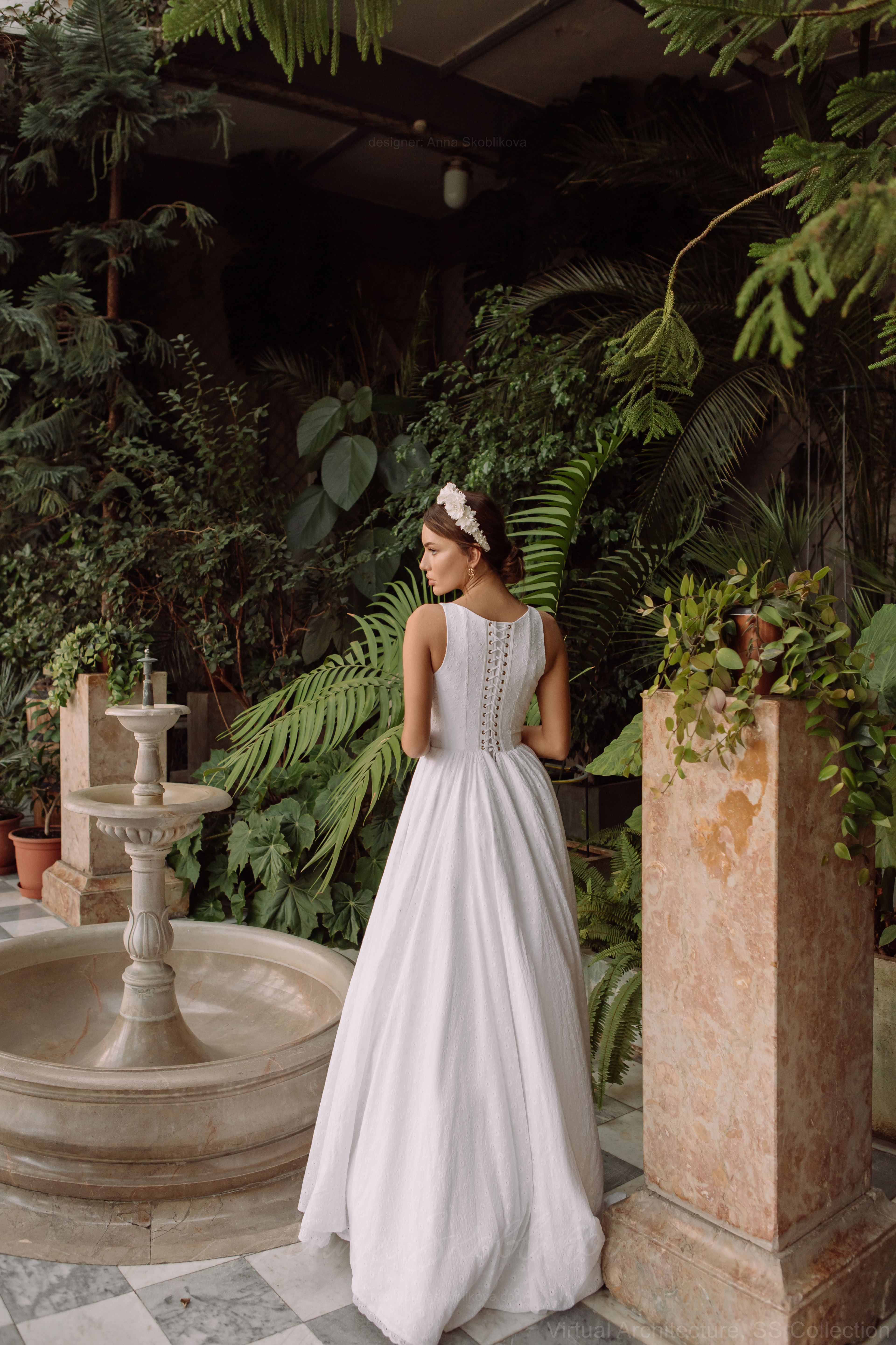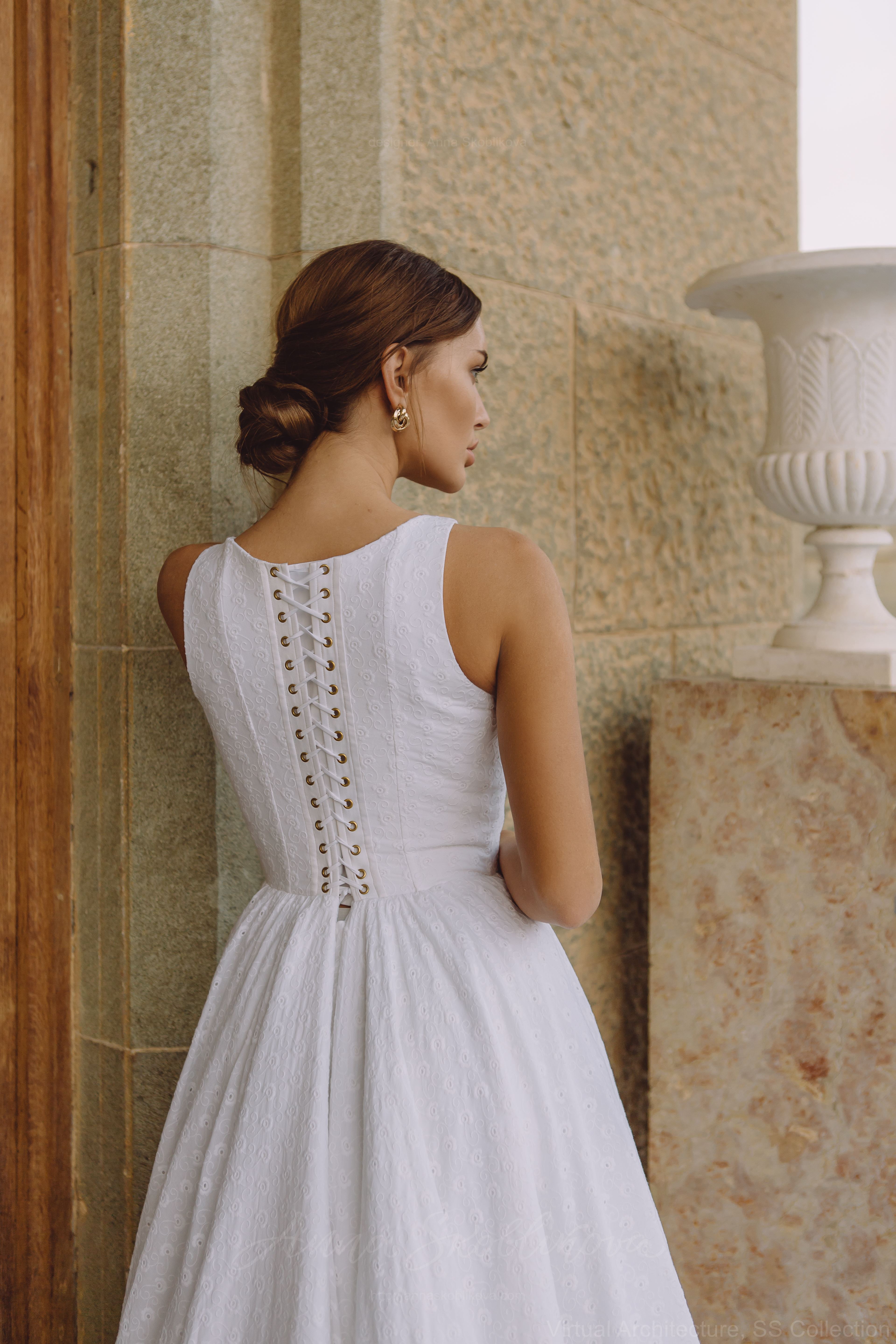 Хлопковое шитье в лаконичном корсетном свадебном платье