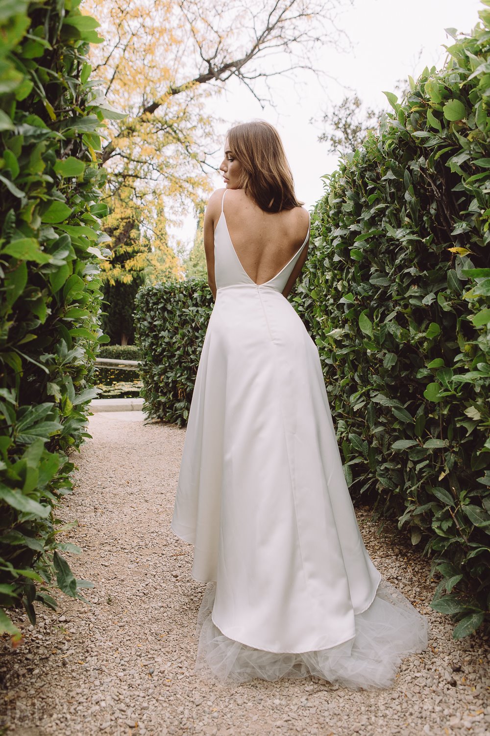 | Keys | атласное свадебное платье, глубокое v свадебное платье, минималистское свадебное платье, Свадебное платье на тонких бретелях, свадебное платье с высоким вырезом |