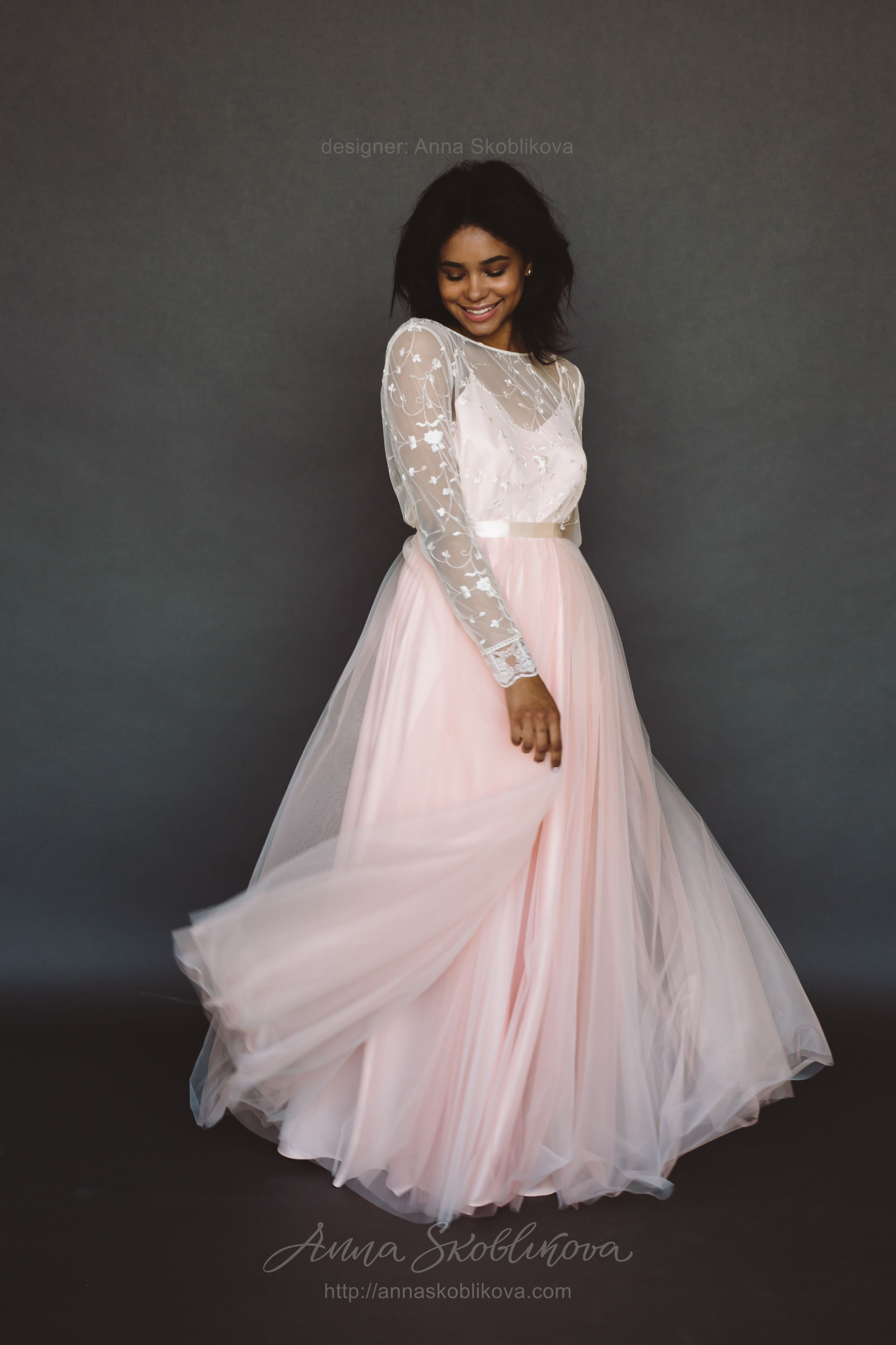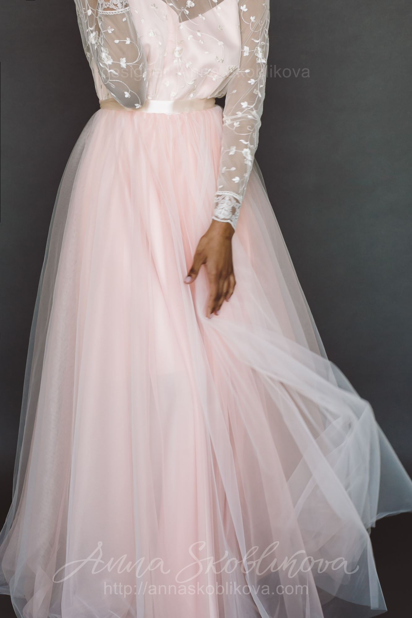 Юбка с персиковым тюлем и двухслойной подкладкой – легкая и струящаяся.