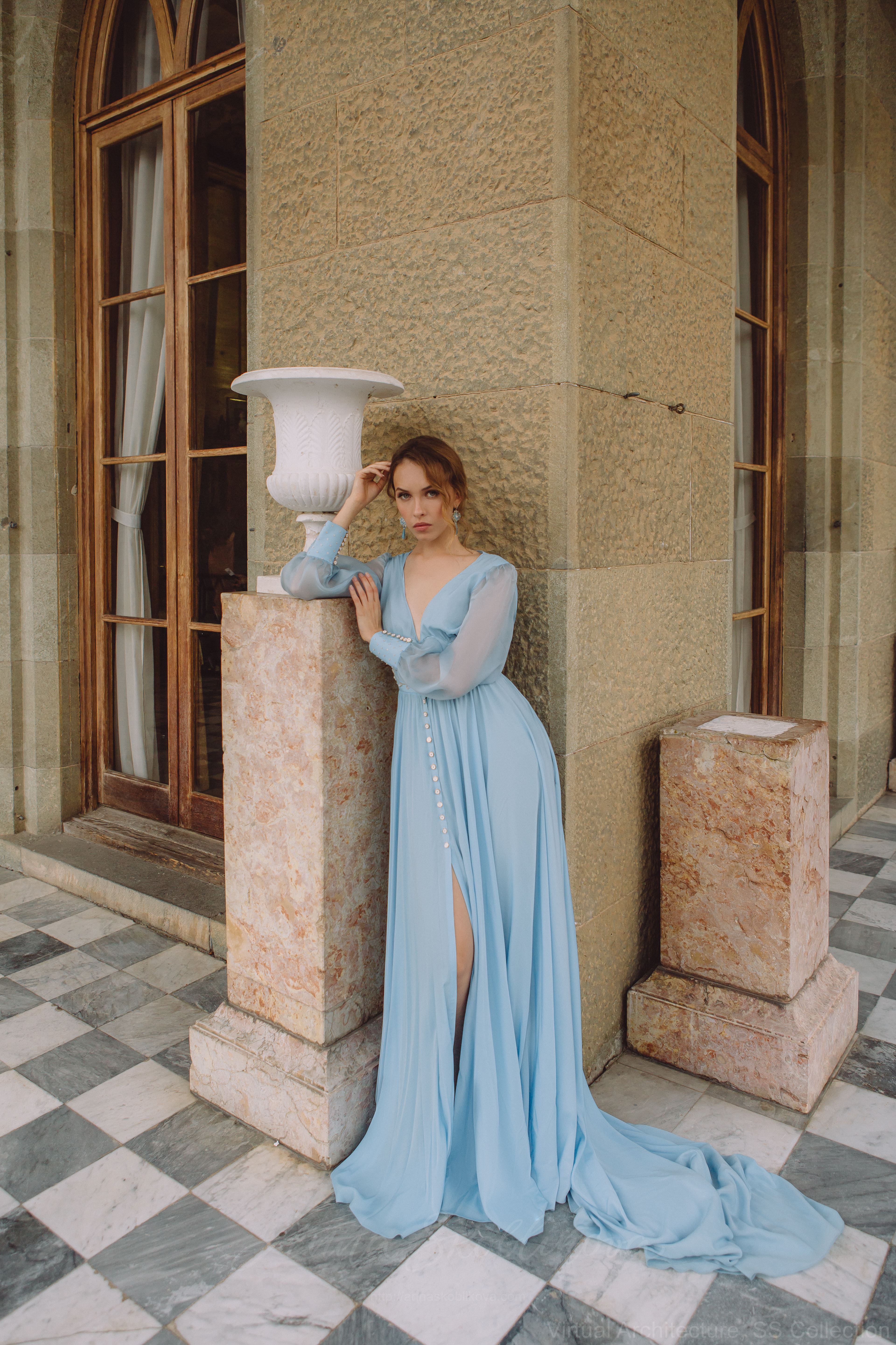 Голубой цвета платья подходит практически любому типажу.