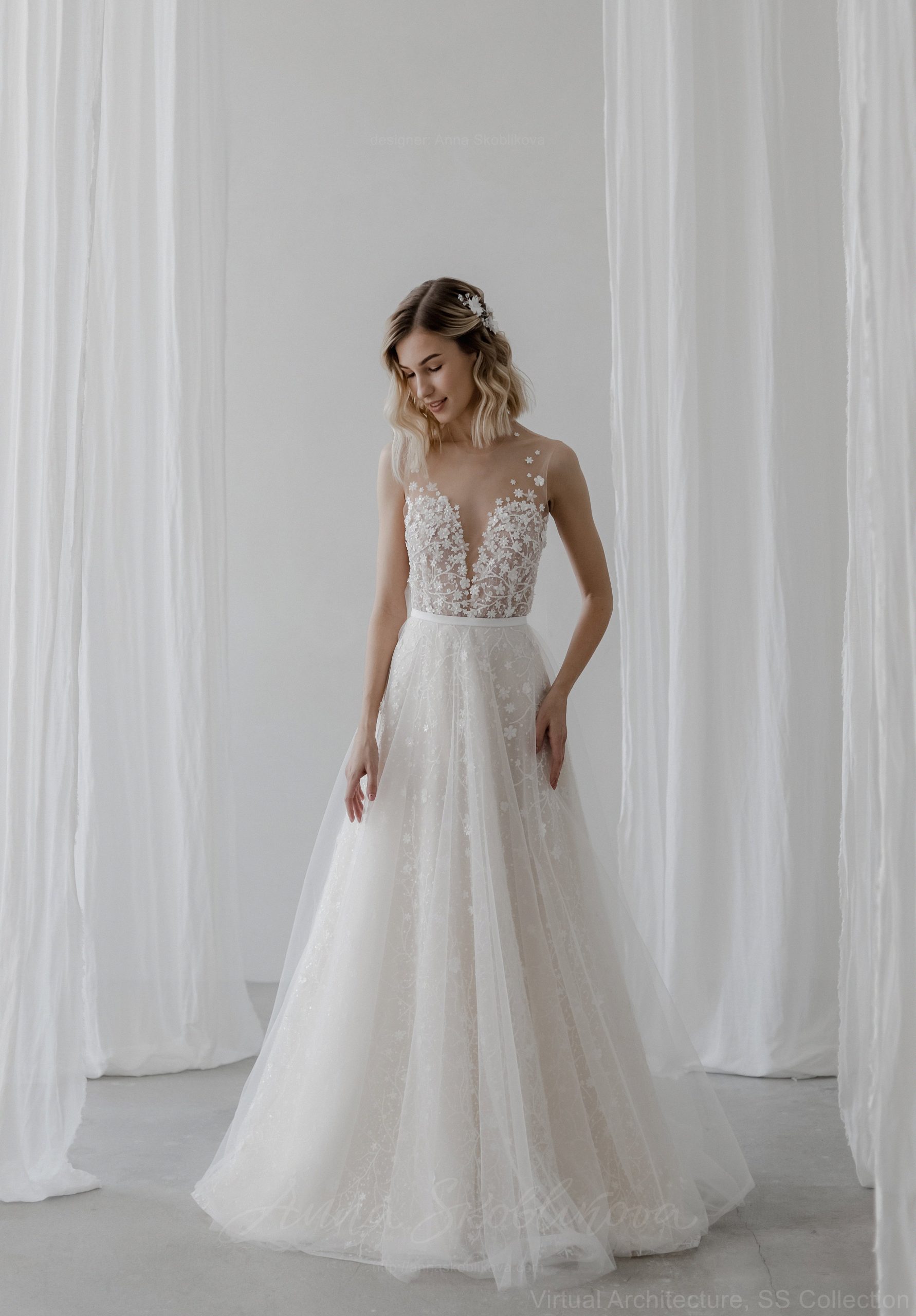 Усеянное цветами свадебное платье из органзы – Iris