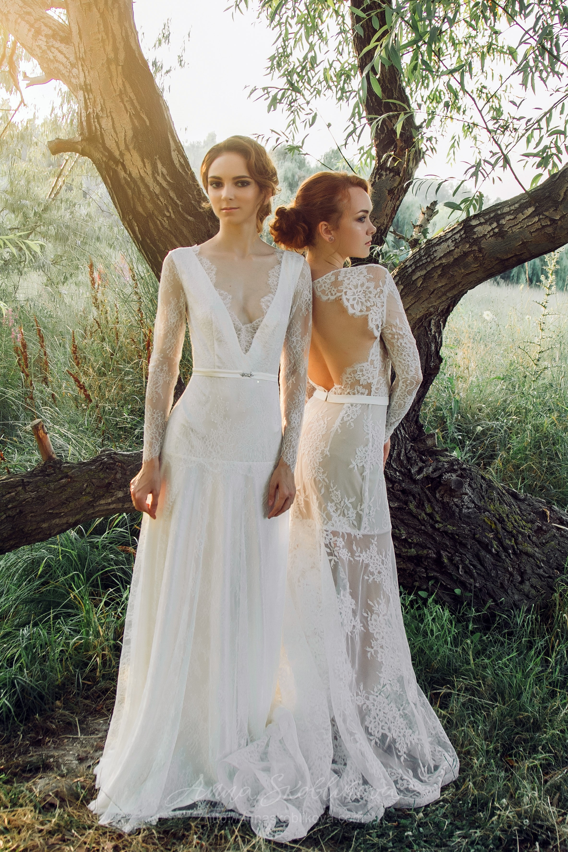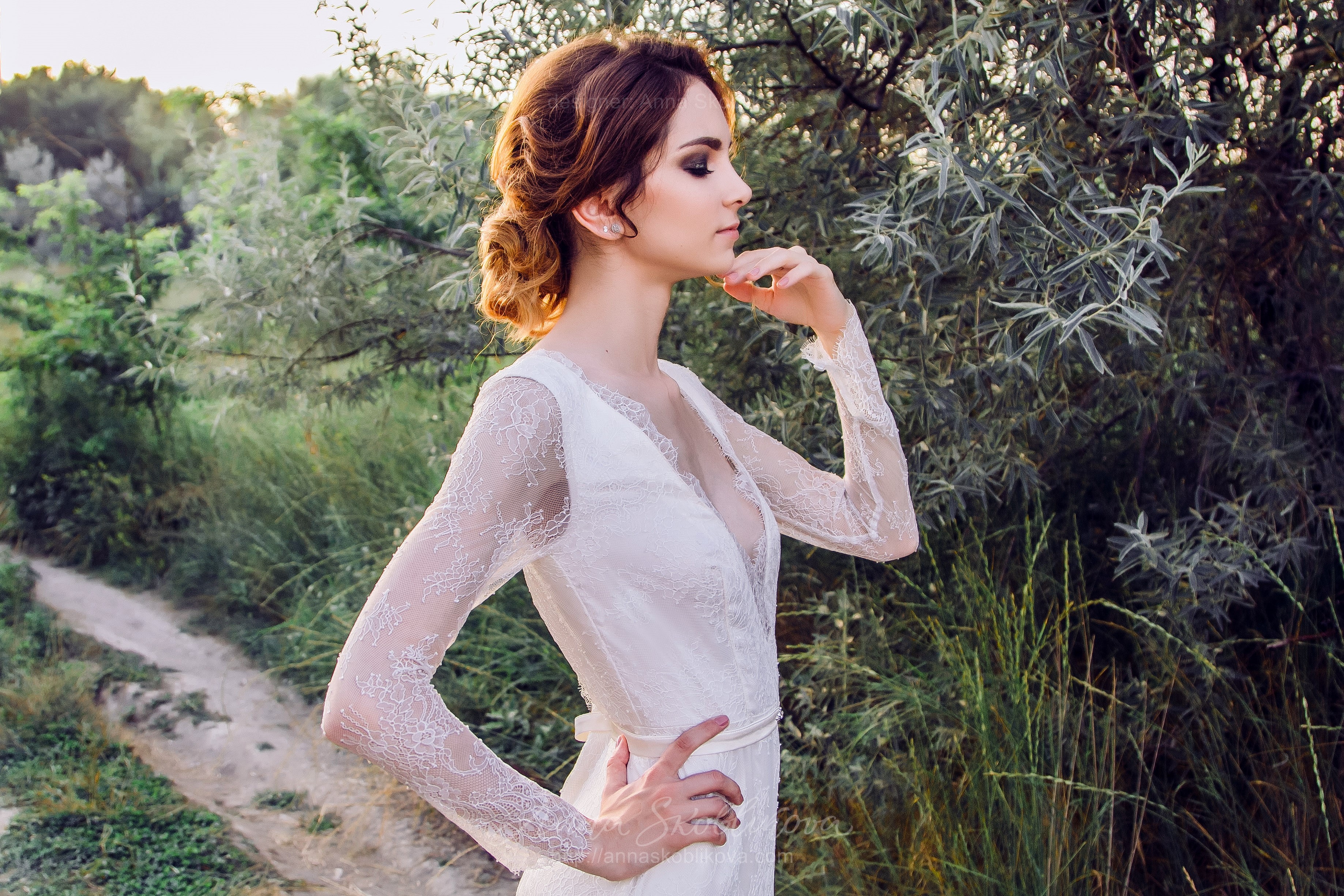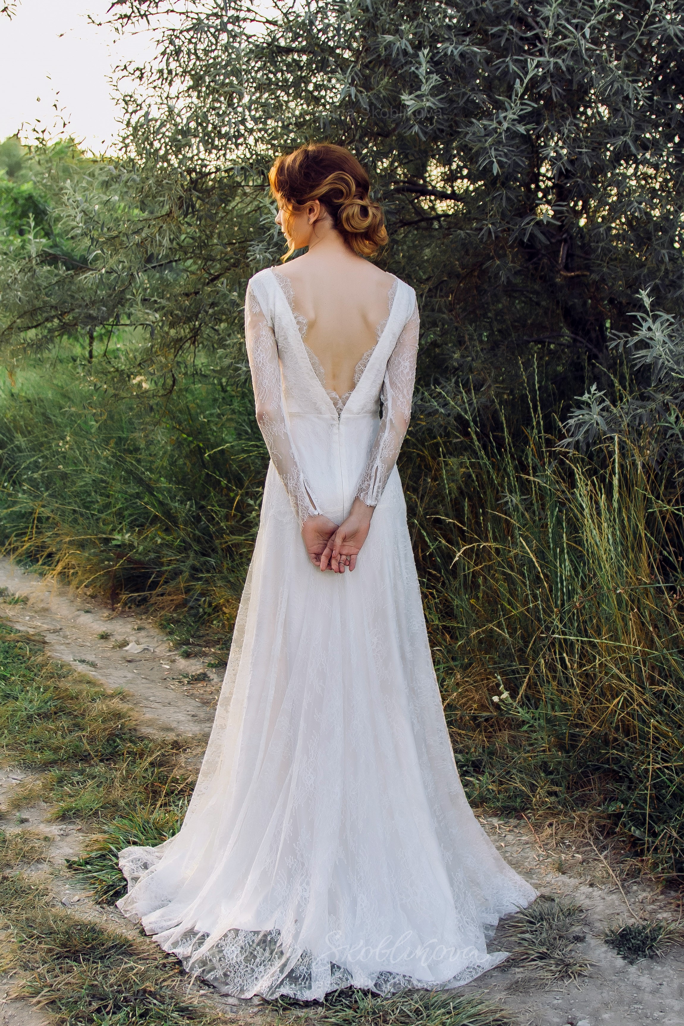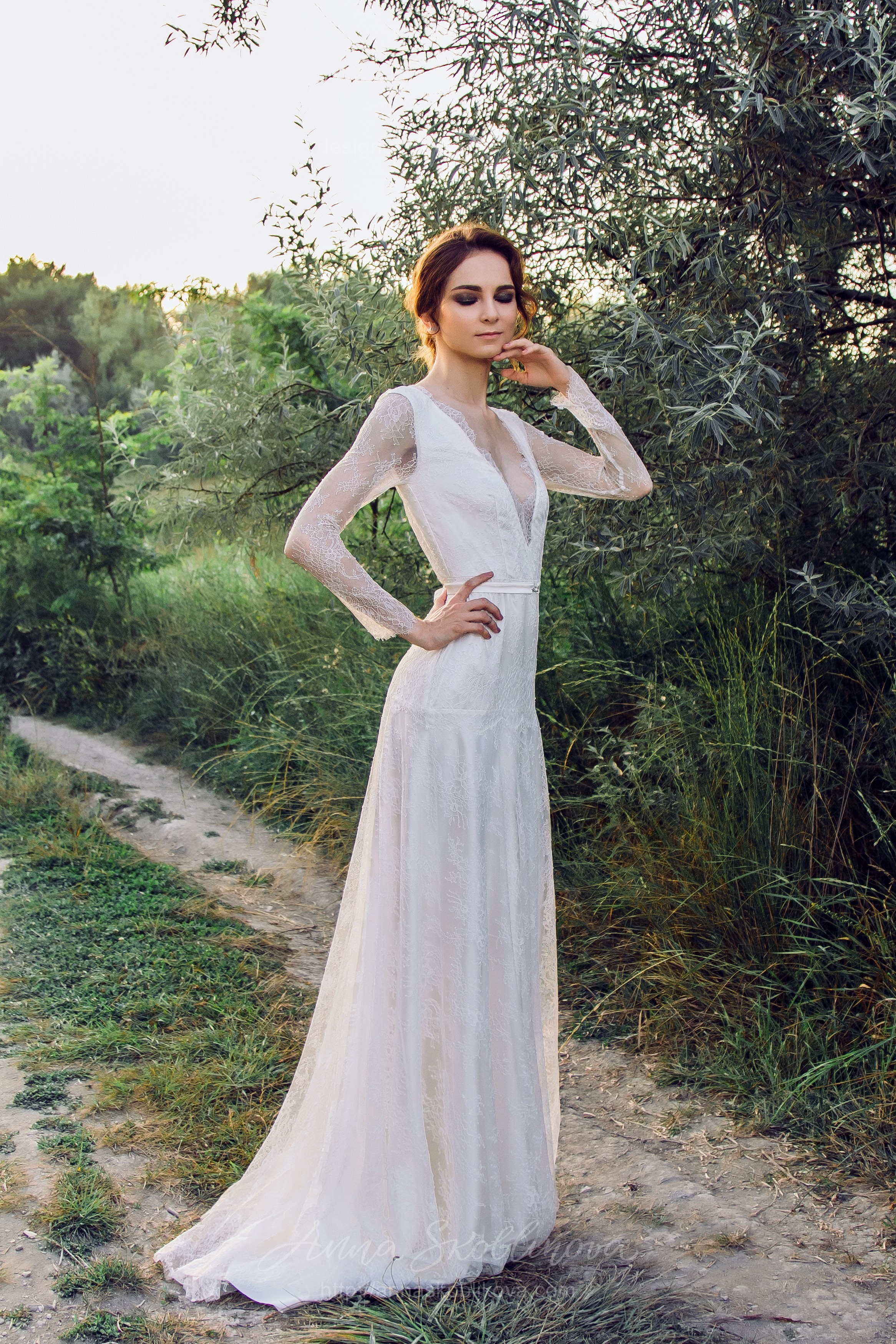 Утонченное и элегантное свадебное платье из кружева шантильи, невесомое и легкое.