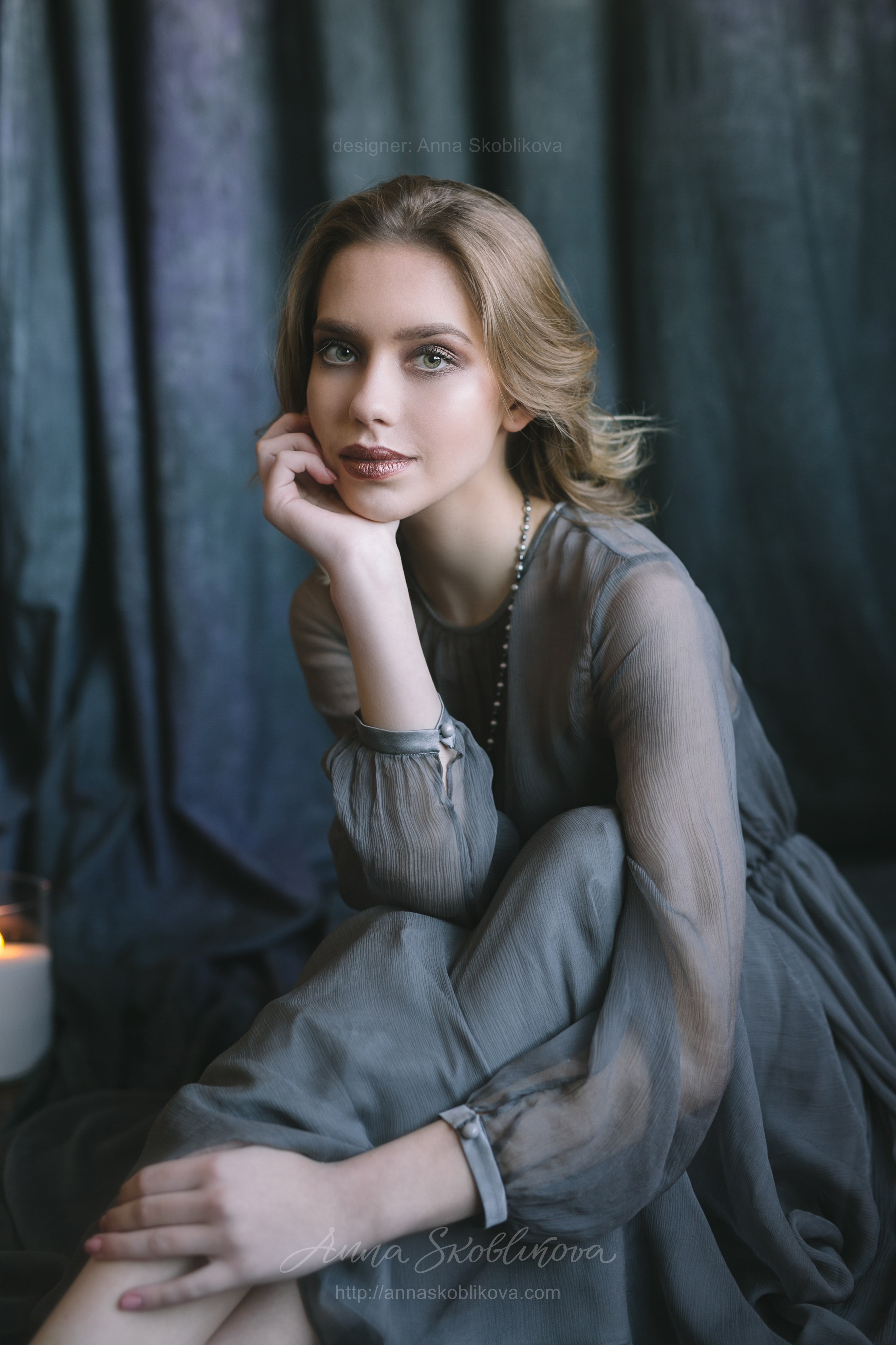 Талия свободная, на резиночке, застёжка на спине в виде капельки.