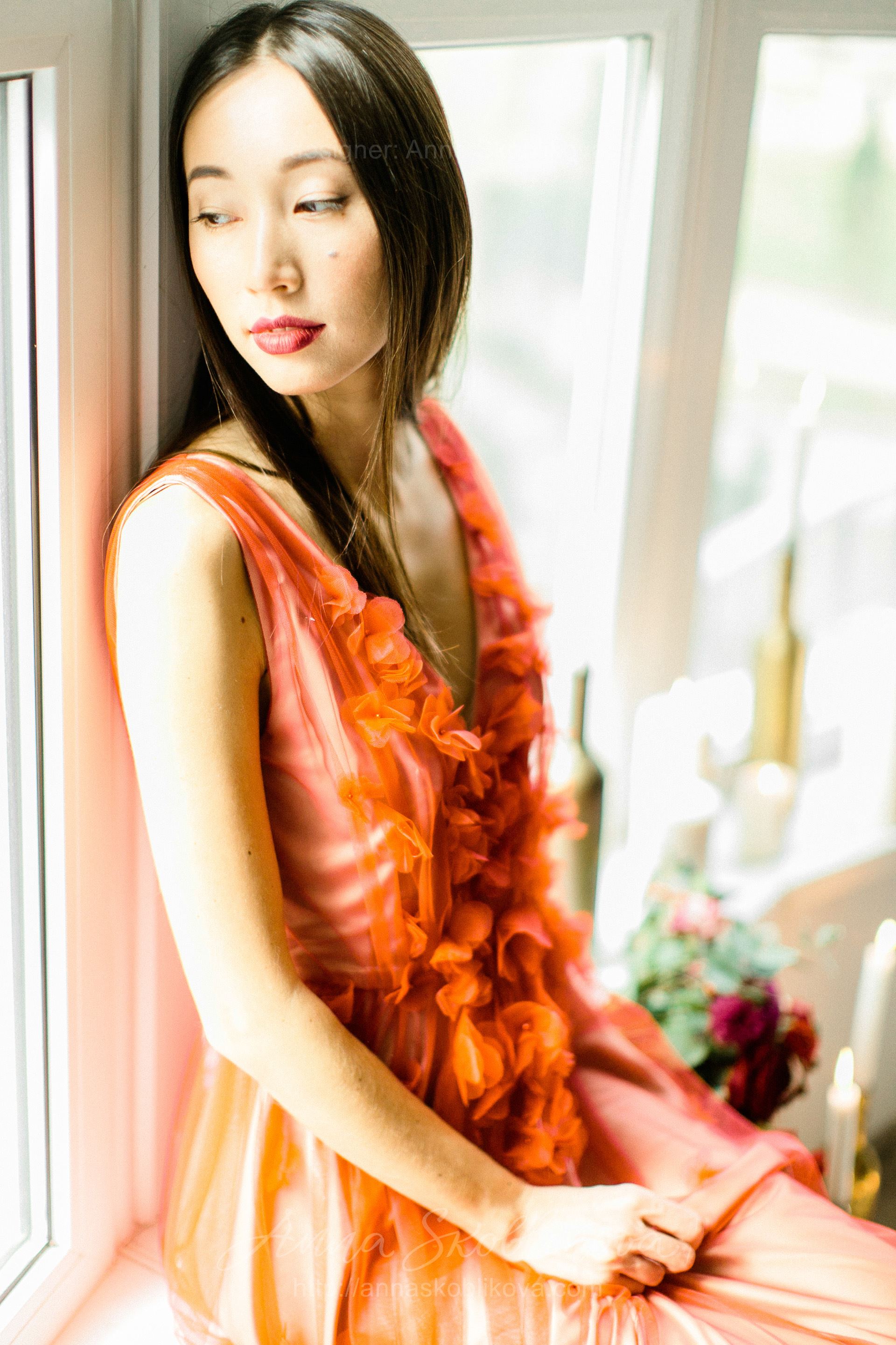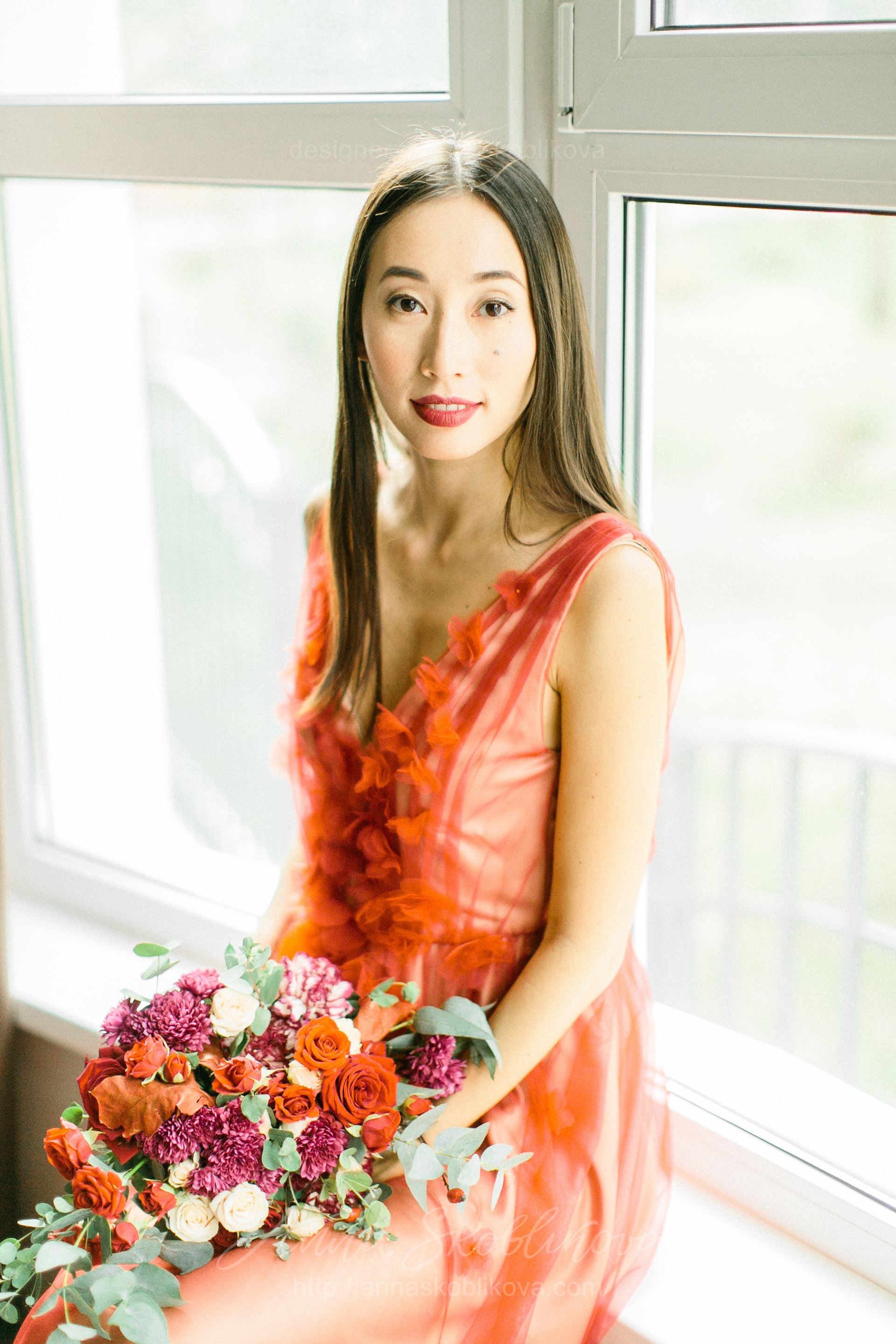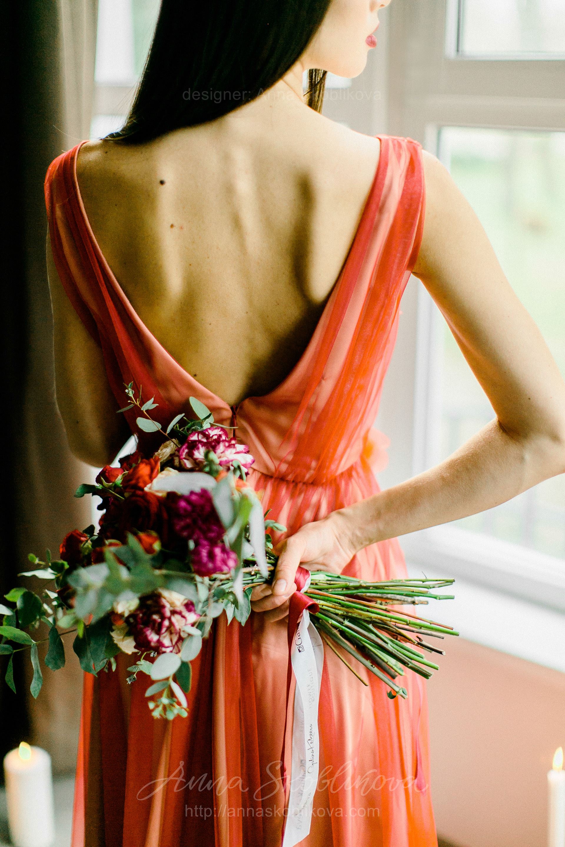 Необычное Вечернее и Свадебное платье красного цвета из итальянской сеточки красного цвета и цветами ручной работы. Яркий цвет, ручная фактура и контраст телесной подкладки и красной сетки создают необычный эффект, если вы хотите остаться замеченной – это платье для Вас.