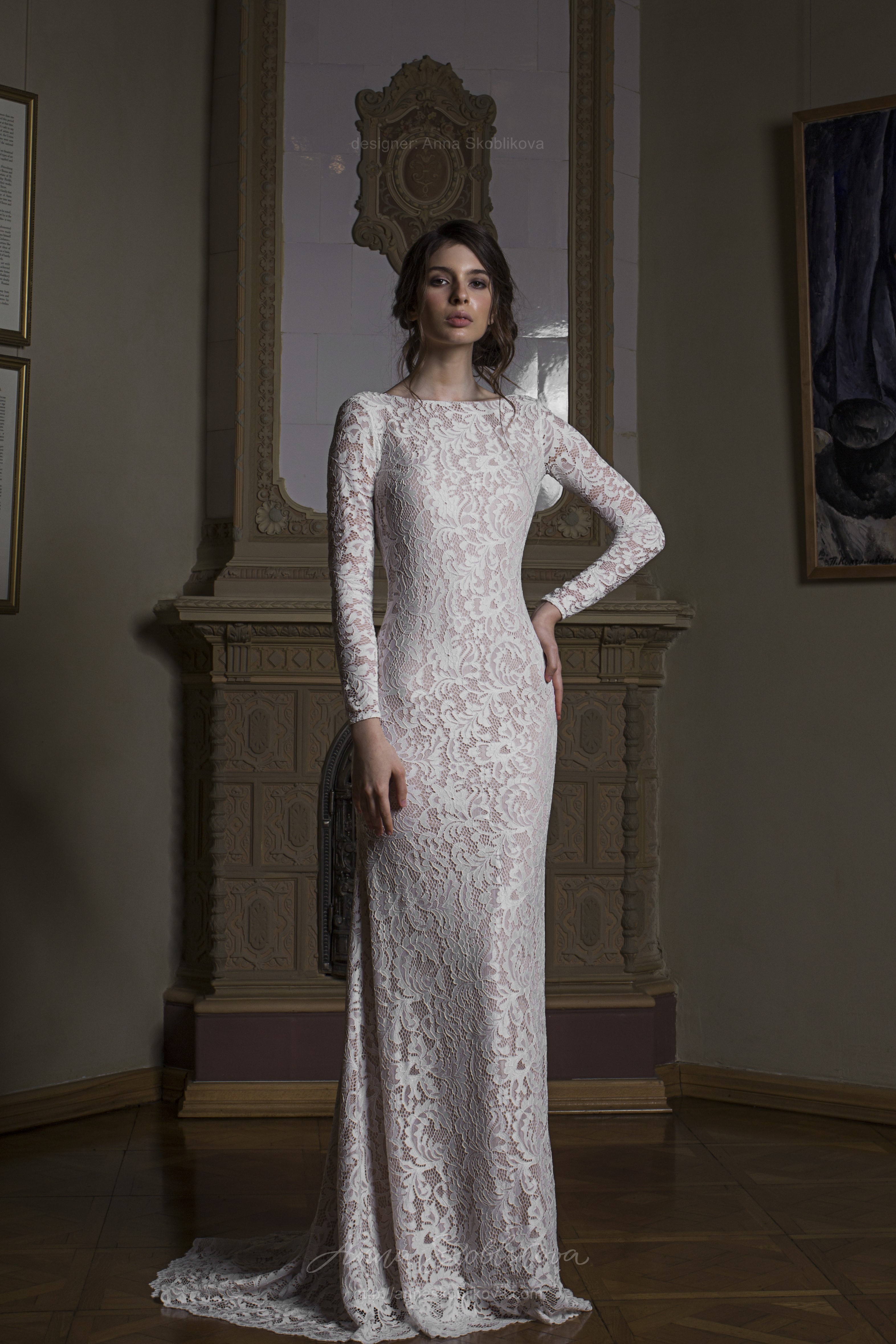 Свадебное платье из стрейчевого кружева облегает фигуру и создает неповторимый силуэт.