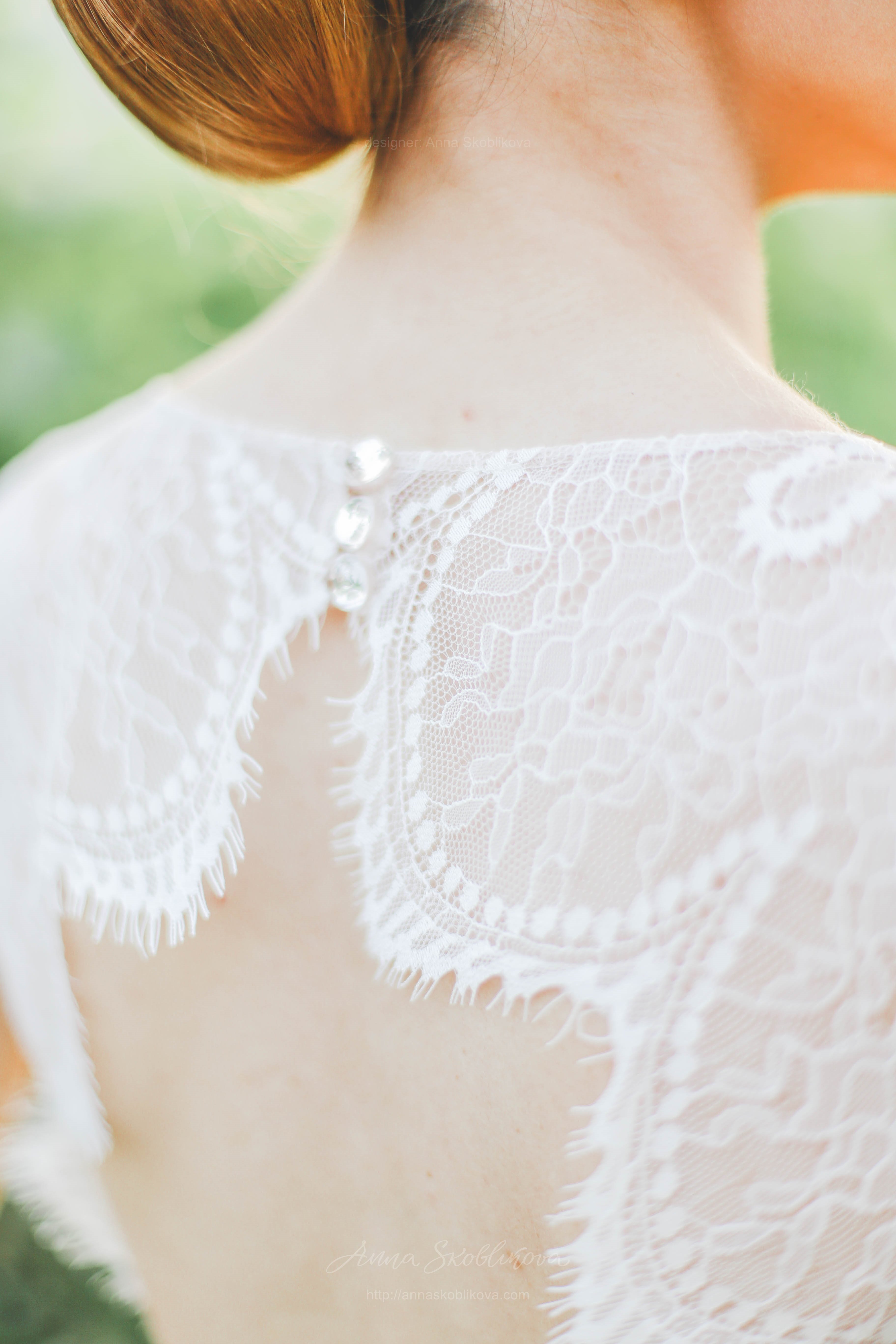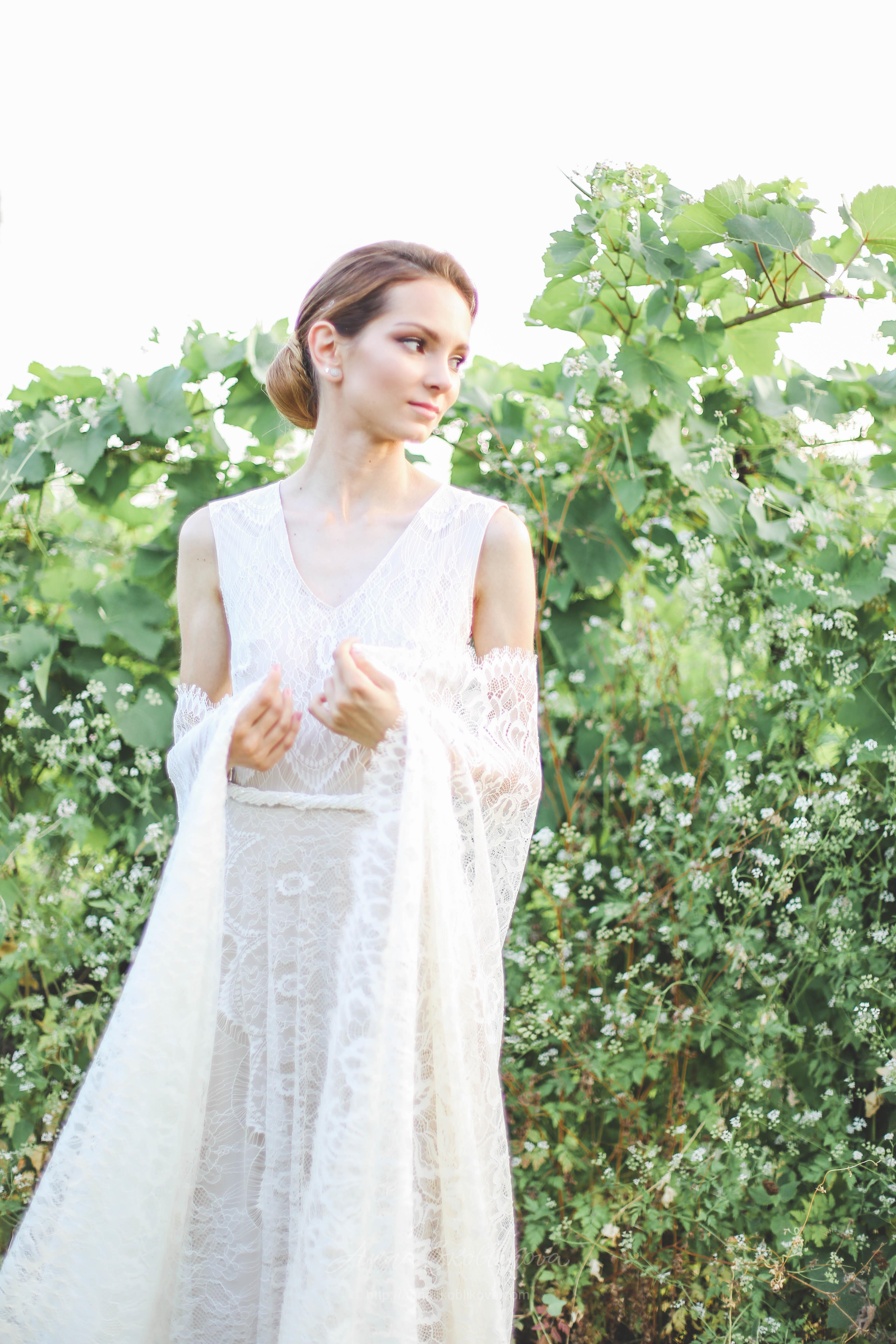 Свадебное платье из нежного кружева на мягкой вискозной подкладке.