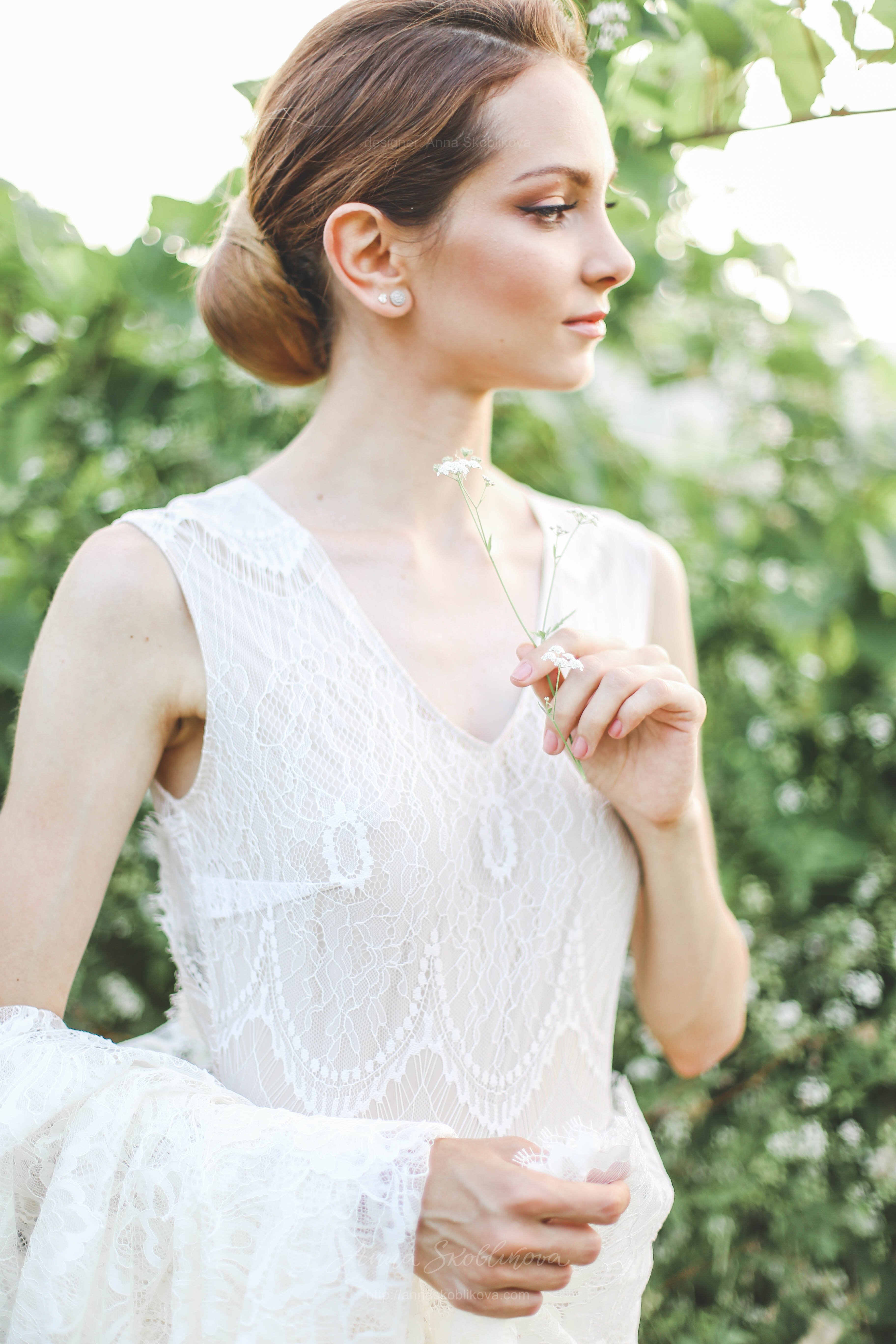 Свадебное платье из нежного кружева с ромбом
